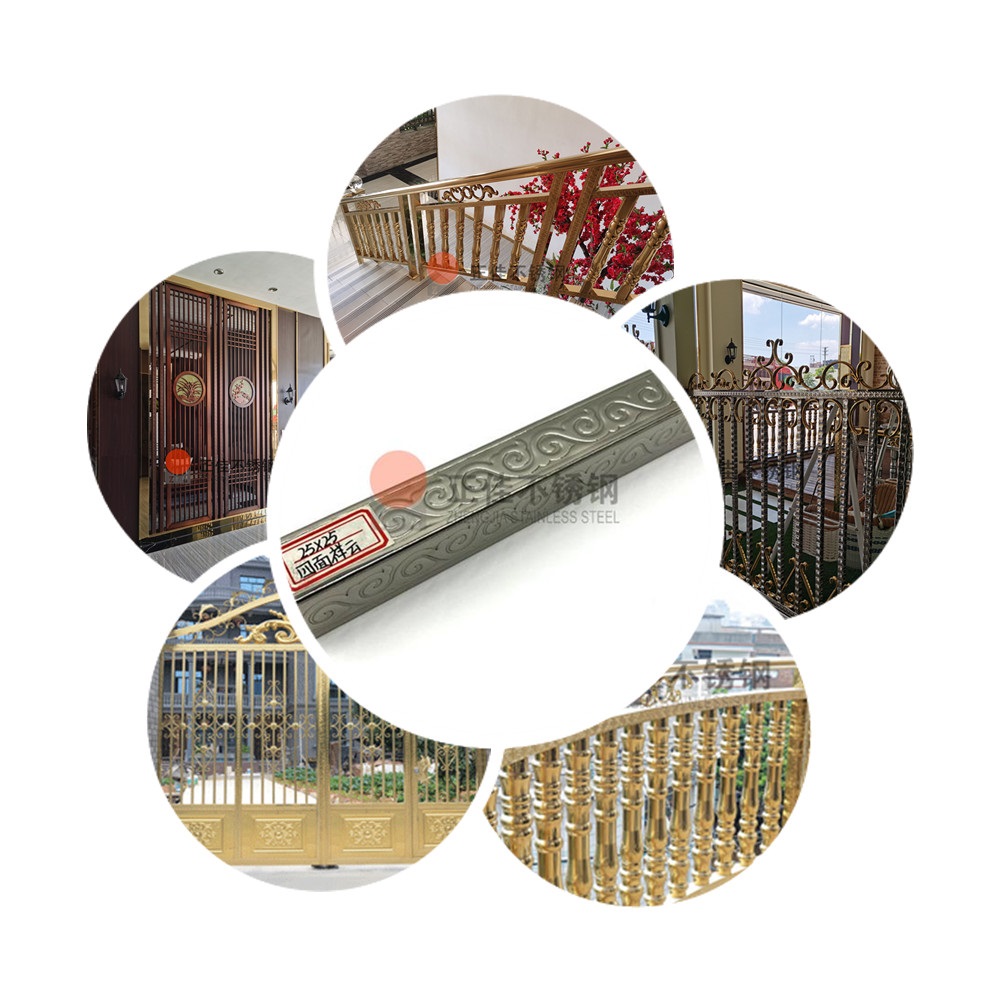 本款產品是一種新型的藝術不銹鋼,在不銹鋼管的表面壓出漂亮復雜的花紋,可定制各種個性花紋。廣泛應用于各種建筑裝飾!