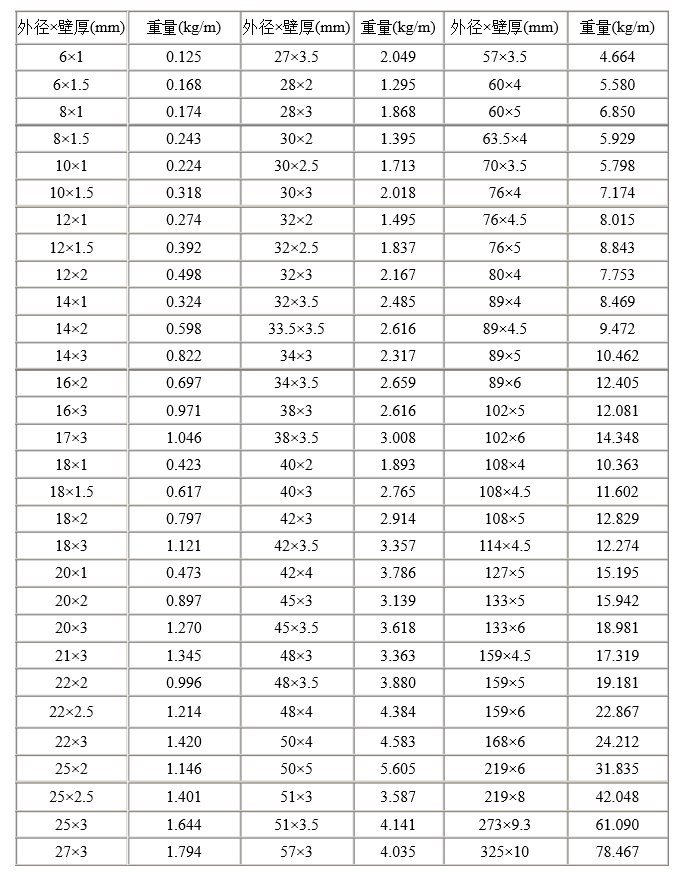 不銹鋼管重量計(jì)算